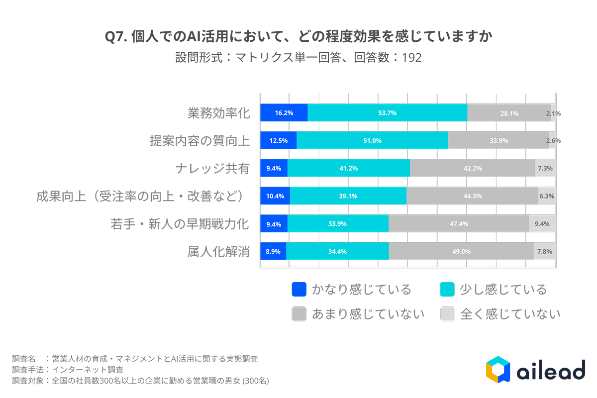 - 個人でAIを日常的に活用している営業職はわずか7%