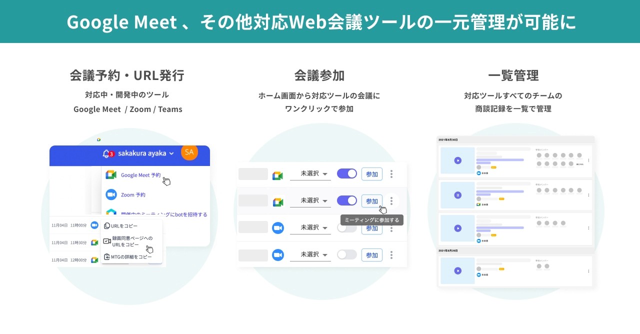 1)Google Meet およびその他の対応Web会議ツールの一元管理が可能に