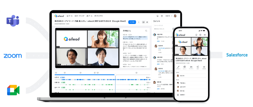 ailead は、AIが商談データを自動で収集・解析・可視化することで、営業現場の業務効率化と「売れる」営業人材の育成を実現します。 お使いのWeb会議ツール(Zoom、GoogleMeet、Microsoft Teamsに対応)と連携することで既存の業務フローを全く変えずにご利用可能。AIによる文字起こし機能やSalesforce連携機能をご活用いただくことで、営業組織における議事録作成や社内共有等の内勤業務を減らします。様々な業界のセールスイネーブルメントに貢献します。 本パートナー連携によって、セレブリックスの、組織に「売れる営業文化」を根付かせる戦略的営業代行事業、営業コンサルティング事業を介して、ailead の提供が可能となります。セレブリックスの提供する多彩なソリューション、強力な販売・サポート体制を生かして、ailead の導入拡大を支援します。