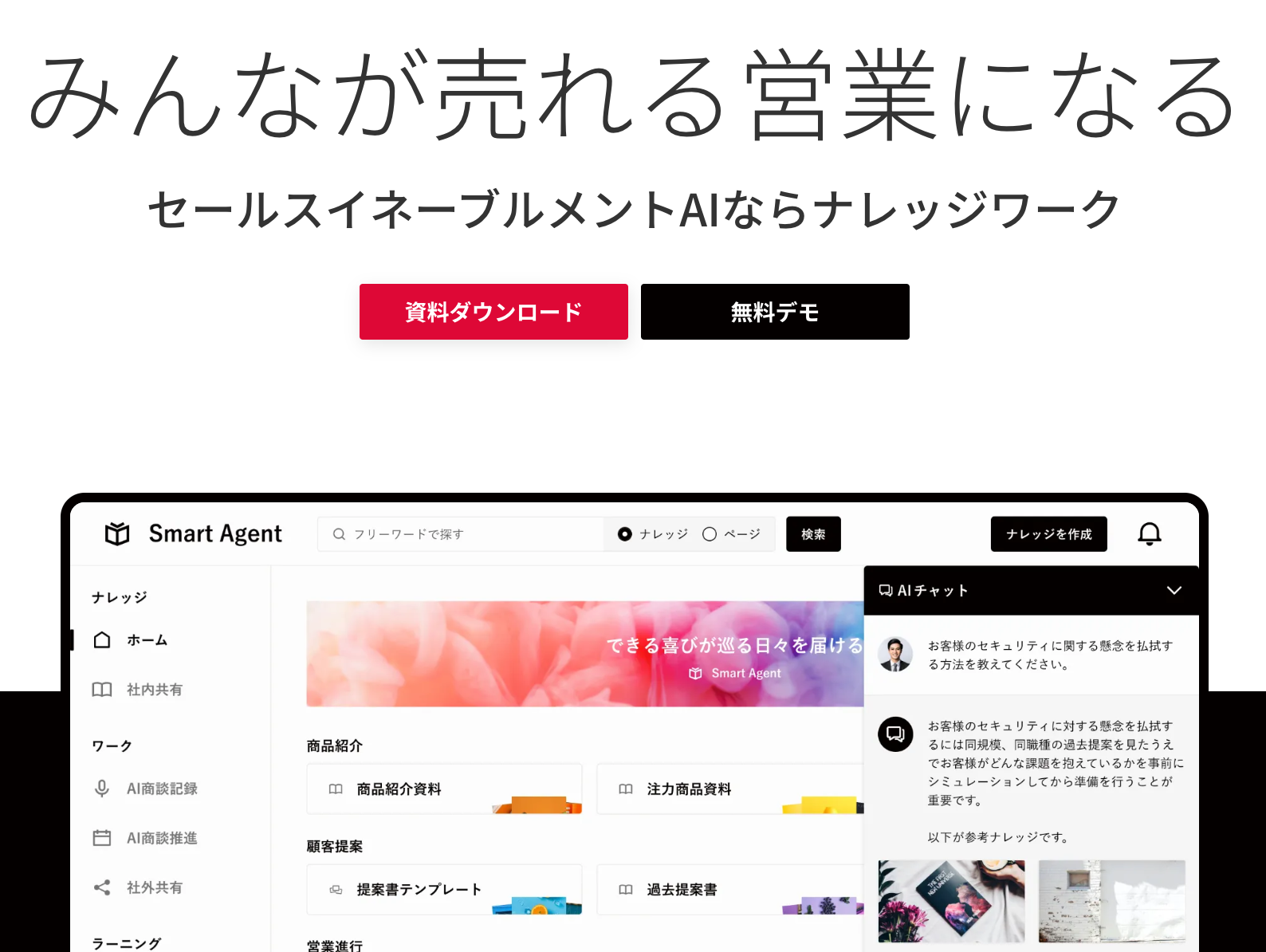 - 営業資料、トレーニングデータの集中管理