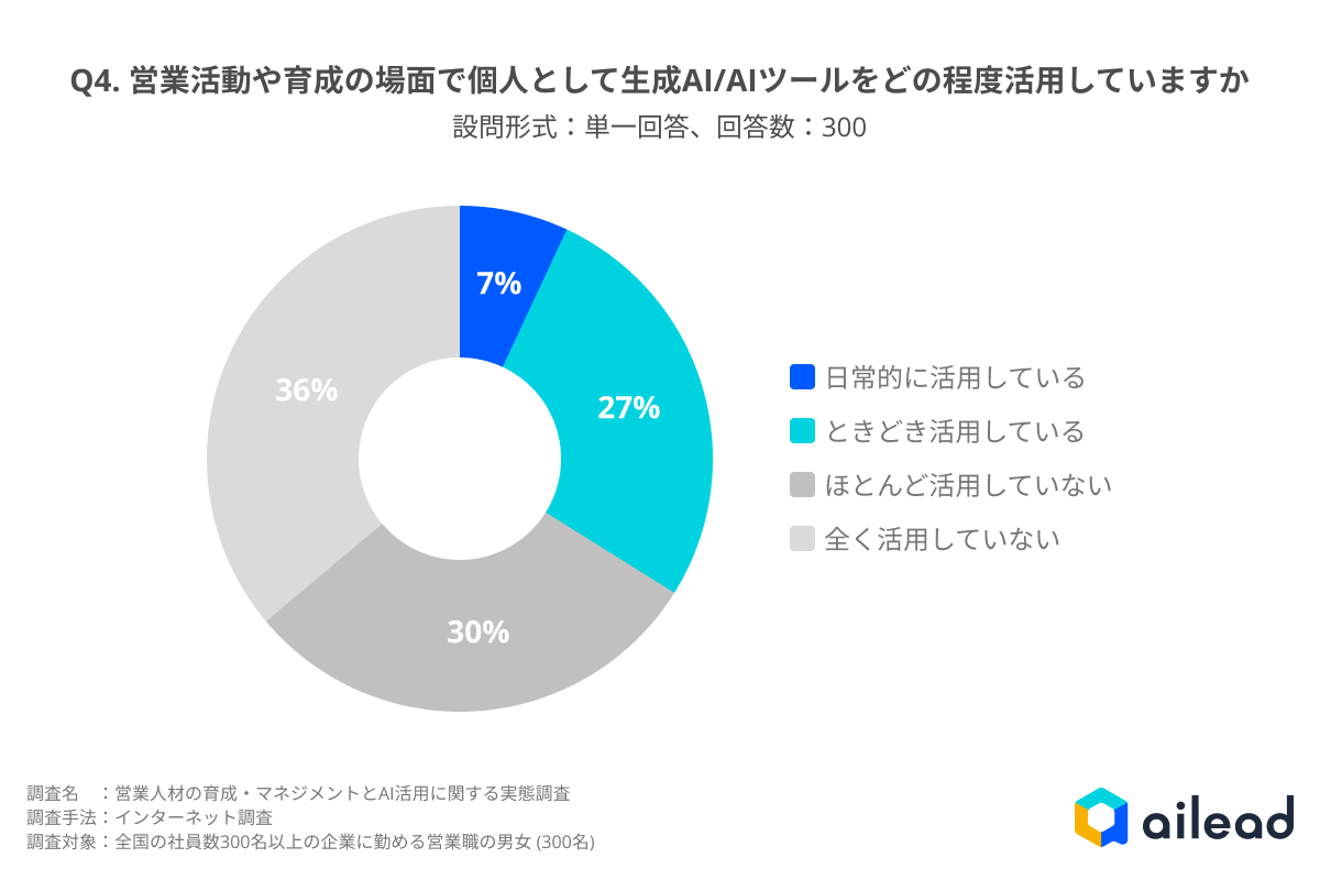 - 個人でAIを日常的に活用している営業職はわずか7%