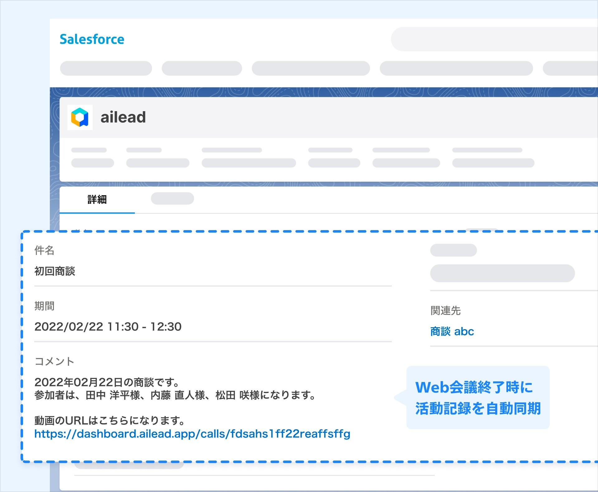 今回の連携により、aileadとSalesforce上の情報を紐づけることが可能となり、Salesforceに自動でWeb会議の記録が入力されるようになりました。商談記録の入力の工数を削減し、営業パーソンの生産性を向上させることで、営業組織におけるセールスイネーブルメントの構築にお役立ち出来ると考えております。